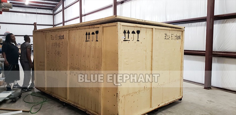 數(shù)控開料機(jī)在美國客戶廠區(qū)實(shí)拍,以下圖片由藍(lán)象客戶提供,展示了機(jī)器到廠后的卸貨及安裝調(diào)試,本文結(jié)尾展示的是調(diào)試好的設(shè)備;
