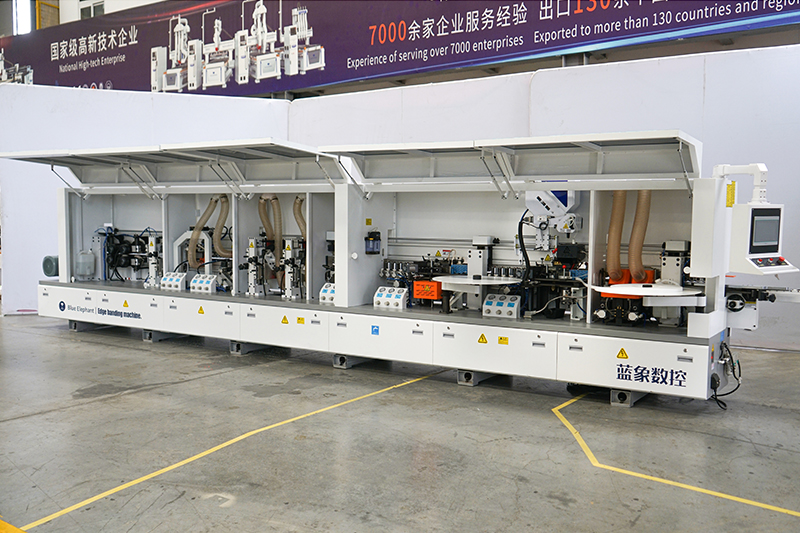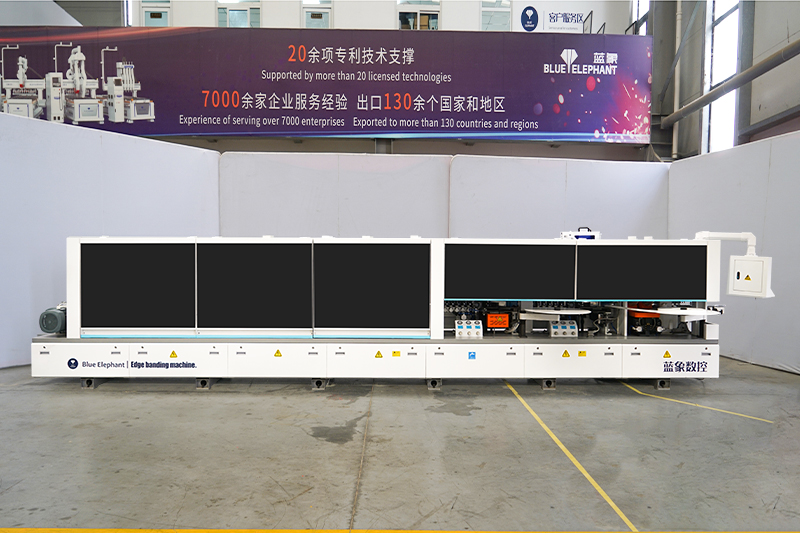 E-70JDS 全自動(dòng)封邊機(jī)可完成涂膠、壓貼、齊頭、粗修、精修、刮邊、拋光等功能,其封邊效果細(xì)膩、光滑、手感好,封線平直光滑。