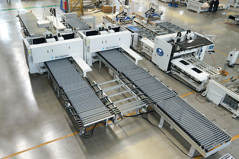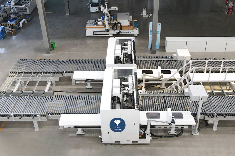 六面鉆雙機連線由兩臺數(shù)控六面鉆、定位機構、高清讀碼器、自動輸送線及智能化控制系統(tǒng)組成,可與封邊機、開料設備組成自動化生產(chǎn)線。