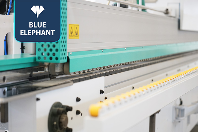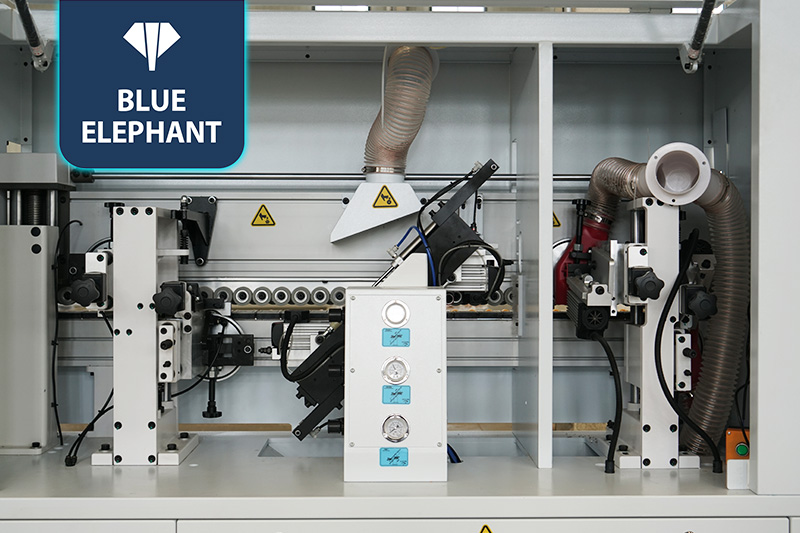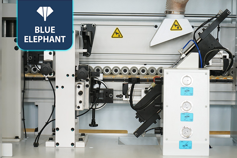 該設備采用45°斜邊鋸,使直板進入板材進行切割銑型成45°斜邊,通過斜直膠鍋和斜直一體壓貼,使封邊帶與斜直邊板材粘合更緊密。
